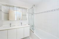 Het appartement beschikt over twee slaapkamers, elk met voldoende ruimte en licht. De badkamer is uitgerust met een dubbele wastafel en een douche-in-bad, functioneel en klaar voor dagelijks gebruik.