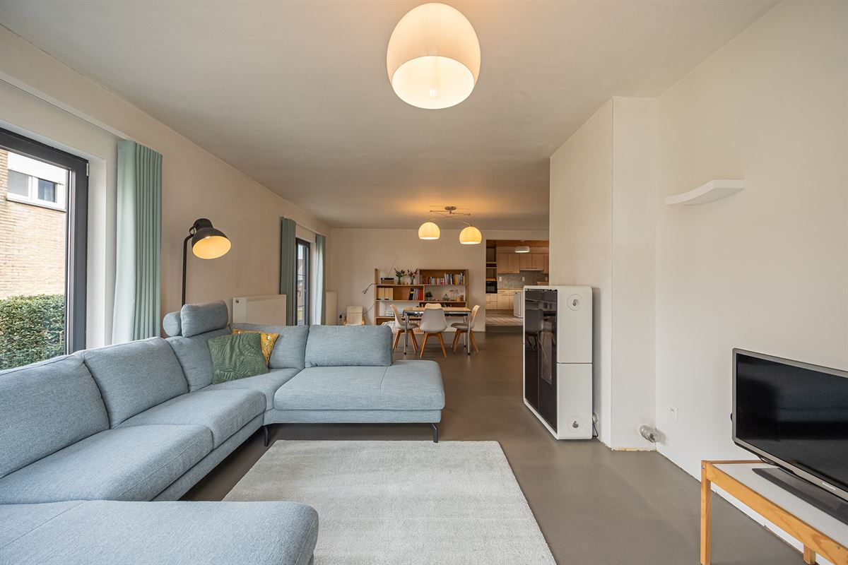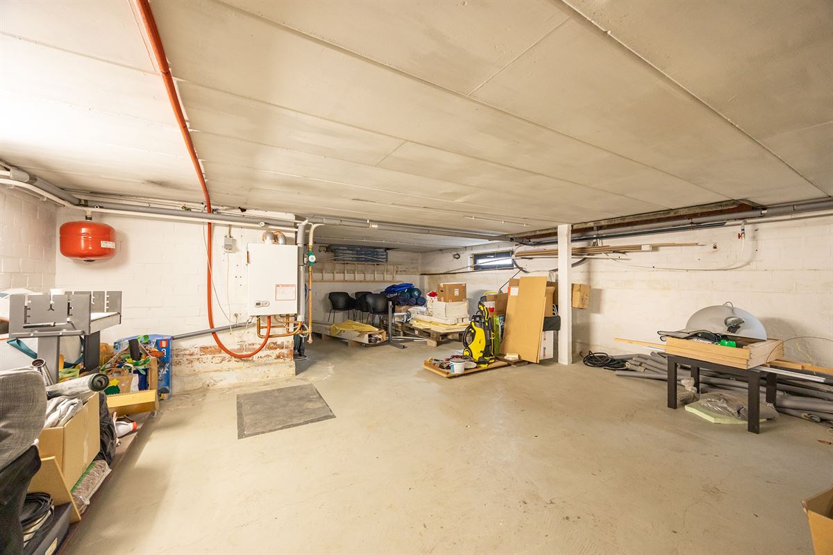 De open leefruimte combineert de woon- en eetkamer, wat een perfect gevoel van ruimtelijkheid creëert. Hier is trouwens een pelletkachel voorzien voor extra warmte, of gezelligheid. De keuken is praktisch ingericht en voorzien van heel wat kasten. Aan berging sowieso geen gebrek hier. Het pand is immers volledig onderkelderd. Zo heb je er wasplaats, provisie- , hobby- en stapelruimte!