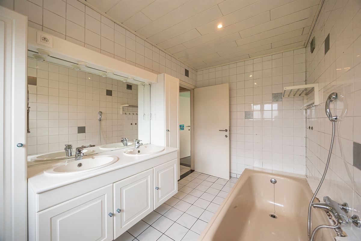 De woning beschikt verder over een uitgeruste badkamer met dubbele wastafel en ligbad. De badkamer is absoluut bruikbaar, maar laat ook ruimte tot verbetering.